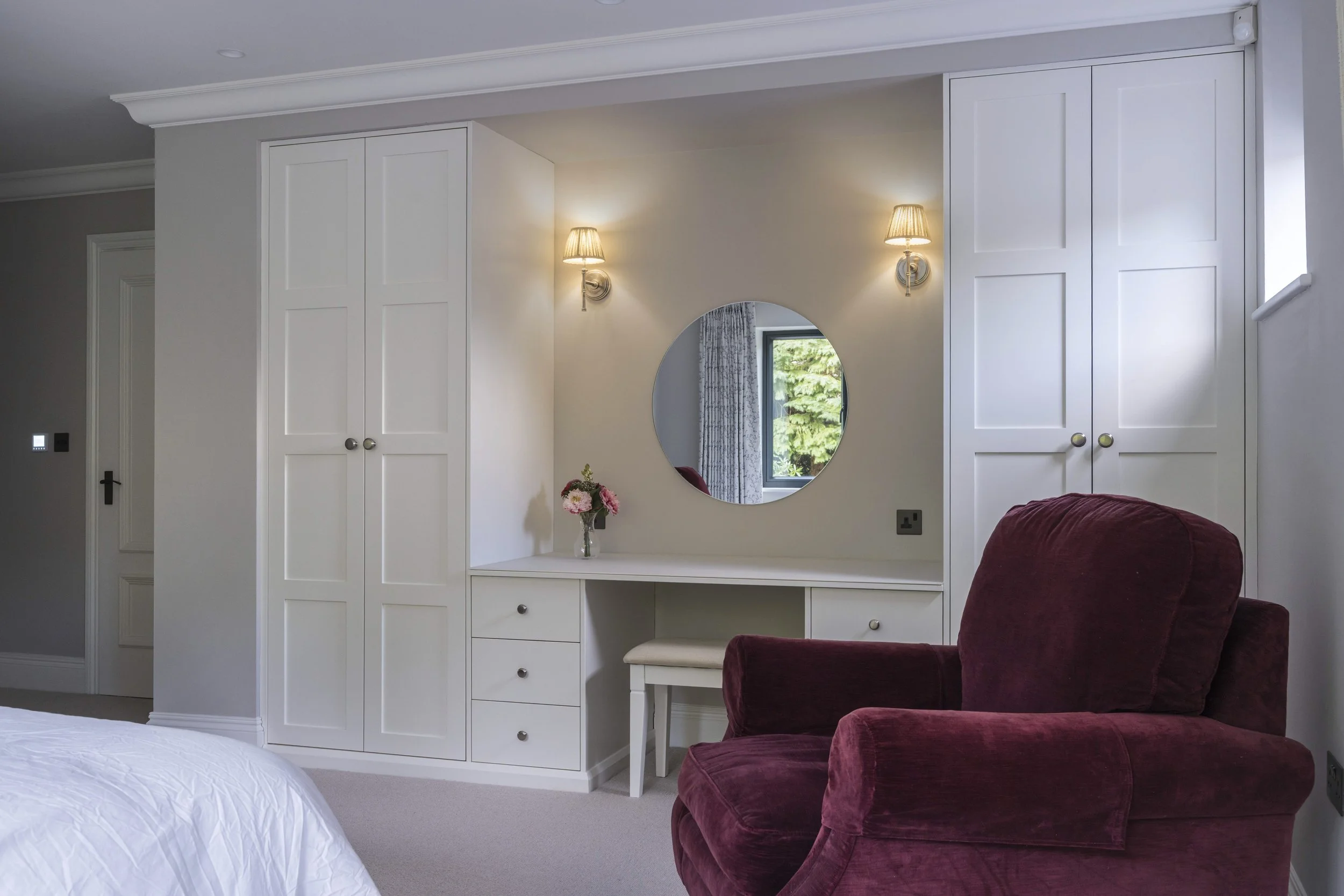 From beautifully fitted wardrobes and dressing rooms to handcrafted bedside cabinetry and integrated storage, every project is made to your exact specifications. We work with exceptional materials such as walnut, oak and hand-painted finishes, blending traditional cabinet-making with a refined, classic aesthetic.